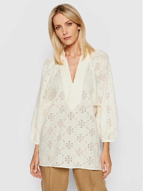 Tory Burch Τουνίκ Logo Lace Ballon Sleeve 84520 Μπεζ Regular Fit