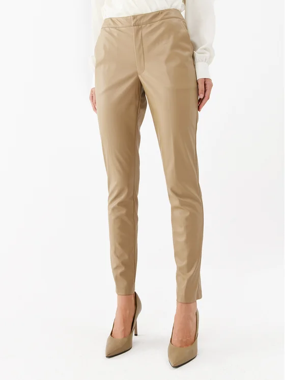 TWINSET Παντελόνι από απομίμηση δέρματος 232TP2905 Μπεζ Regular Fit